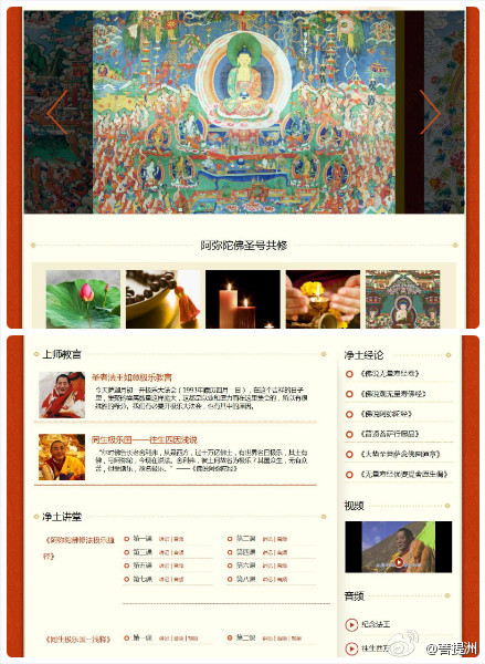 顶礼大恩上师法王如意宝,所有众生都能往生极乐世界是法王最大的心愿。为了能引导更多的有缘信众生起对阿弥陀佛的信心,发愿往生净土。菩提洲网站“同生极乐”栏目上线,栏目中有阿弥陀佛圣号共修专区,增添了佛陀及传承上师关于净土的开示教言、以及净土讲堂等。南无阿弥陀佛! 网页链接