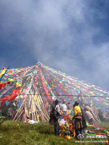 今天扎西持林全体僧众和周边信众来到扎西雍贡(汉译吉祥福荣岗)山顶与喇荣五明佛学院同时供护法。