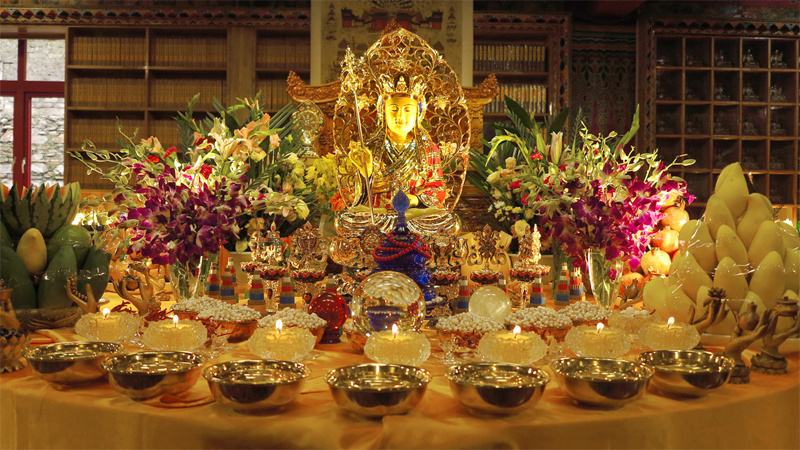 法王曾经在地藏法会上,谈到我们修持地藏法门时,能够获得相应的根本祈愿。要知道,缘起的重点在“愿”,而祈愿一定要在根本上着眼。地藏菩萨是满愿之王,谁有信心能归命地藏大士,谁有悲心能为群生着想,那么自然就跟地藏大士相应。而一旦跟地藏大士相应,他就能像大地一样地载托起无边广大的事业,能出现无量众生的利乐,能出现无数兴盛的相。