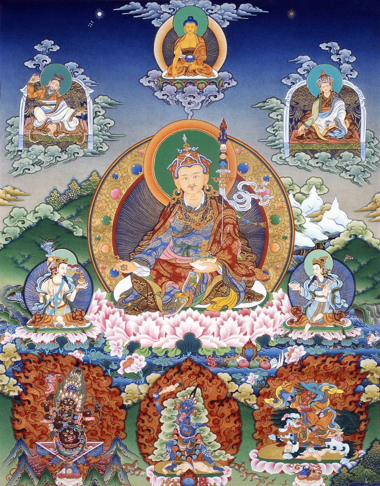 今天藏历二月初十,是第二大佛陀——金刚上师莲花生出家吉日,它的由来有这样一种说法:莲师前往金刚座,在那里示现各种神通。有时幻化百千比丘身,在三宝所依前做供养,有时幻化百千瑜伽士,做各种稀奇行为。很多人问他:“你的阿闍黎是谁?”他回答:“我无父、无母、无种姓名字、无堪布阿闍黎,我是自然佛。”这么说时,大家生疑惑:“没有阿闍黎,竟然自己有神通,是不是魔呢?”莲师见到这种情形,心想:“我虽是自然化身,但为了弘法利益后人,我需要依止智者成就者求学外内密的一切法”,认为有很多必要,就到了萨霍尔国,从札巴哈德大师出家,这时被称为“释迦狮子”。虽然仅仅听一次就知道,但为了显示清净障碍的方式,对于诸多瑜伽部每个都听了十八遍,由此不修也在当时见了瑜伽续三十七尊本尊的面等,格热释迦狮子已经得到瑜伽部的成就。由此殊胜缘起,在教典中说在这一天中祈请莲师,能够增长正知、增长正念、增长资具 、增长健康、增长寿命、增长慈悲、增长净戒、增长禅定、增长智慧,增长弘法利生事业等,所以大家应当多念修金刚七句祈请颂及莲师心咒等。