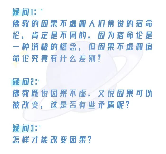 根据这位善友的提问,我们梳理了一下因果不虚和宿命论各自的概念,希望借由本次的分享,能让更多的人了解因果以及因果运行的规律。