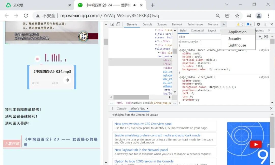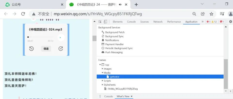 6、下载音频过程基本相同,打开音频文件,点右键,检查-application,在media下出现getvoice文件,双击打开,其他步骤相同。