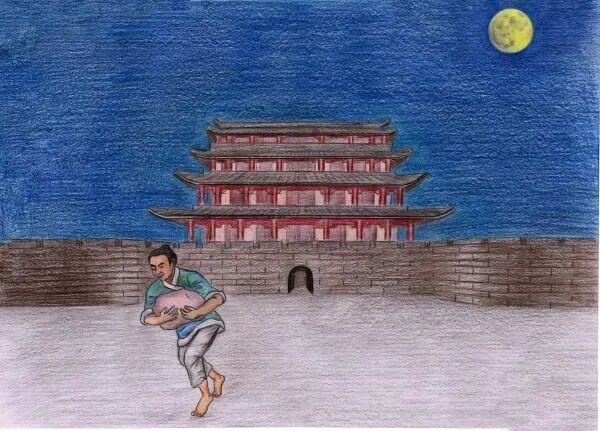 有一天,他潜进国王的藏宝库,偷了一件价值连城的宝物,逃跑了。