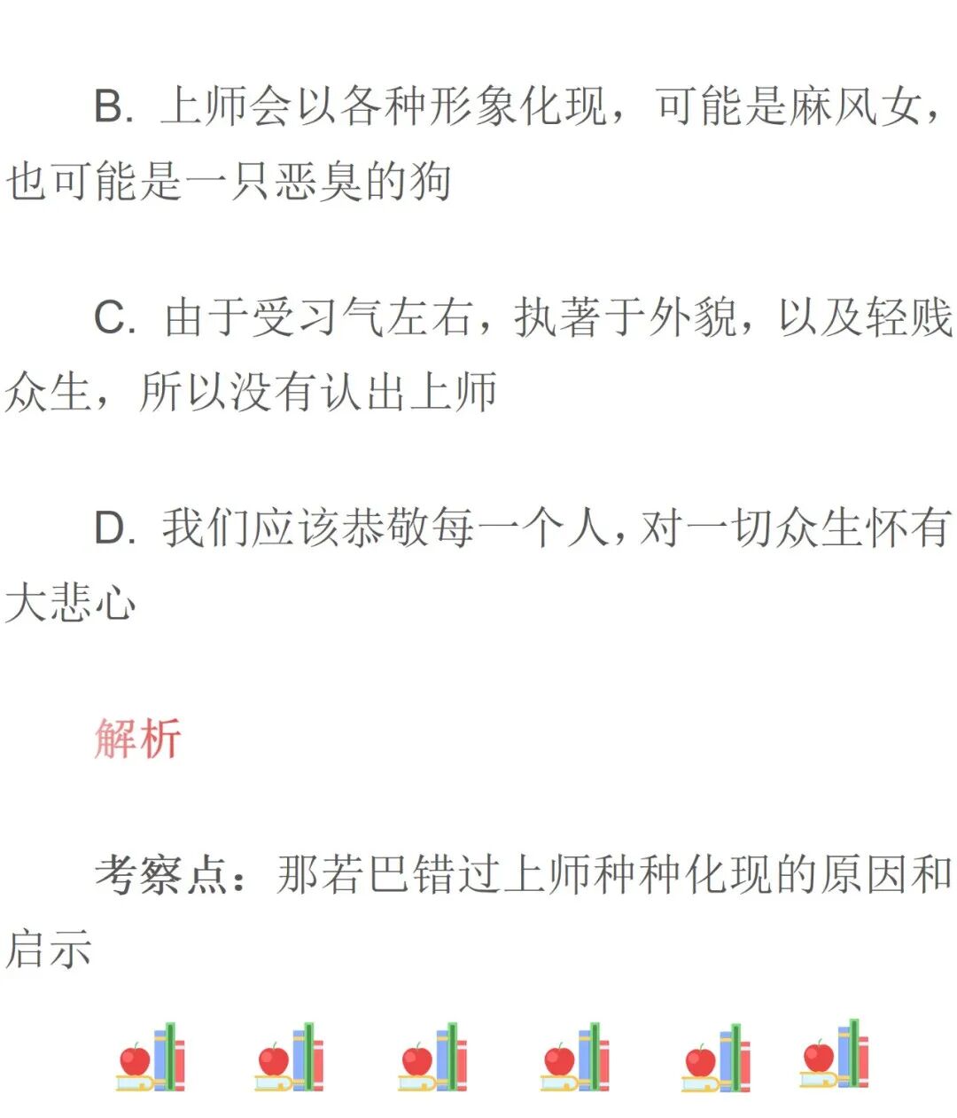 B.对比现实行持:假如上师没有帝洛巴那样的境界,就应该用比较调柔的方法或通过开示、传法等方法来摄受弟子,否则就太不负责任了。在依止上师的时候,一定要注意这一点。