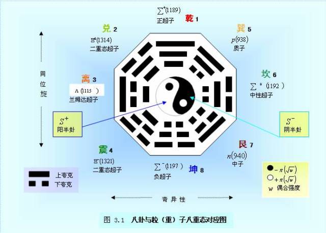 1、其中有两种夸克——中微子和光子,在绝对静止状态下,它质量是0,它一动要么是+、要么是-,所以,科学家发现的“夸克”几乎同时出现一正一负的“对夸克”。这不禁让我想起老子《道德经》“道生一、一生二、二生三、三生万物”,其中二是指阴阳,三应该是五行(因为元素周期表里面的元素几乎都可以按“金木水火土”分类了),“三生万物”可以理解为这五种基本元素按不同比例的组合就形成了宇宙万物啊!那么“一”是什么呢?没错,当然就是指“0”!还记得佛祖说过“四大皆空”吗?还记得六组说“本来无一物”吗?紧接着——