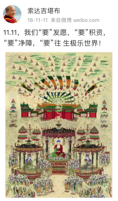 净土法门相关开示--堪布2018.11.10第145次网络开示11.11,我们“要”发愿,“要”积资,“要”净障,“要”往生JiLe世界!11.11,我们要发愿,要积资,要净障,要往生JiLe世界!今天念《阿弥陀经》的传承。在这之前,我要说几句话。我们学佛、听法,真正闻思修行的人,从整个人类的数量来说,从整个佛教徒的数量来说,甚至我们随学者的数量来说,真正长期闻思修行的人,我看是少之又少。当然跟接近二十多年前在山沟里面讲经说法的人数比较起来,现在应该是多之又多。但是信息这么方便的今天……比如我做一个简单的开示,就像今天晚上之类的,星期六、星期天的时候,人稍微多一点;而平时上课,有些人说人很多,但其实数量一般。当然跟以前信息不发达的时候比较起来,确实人很多。但现在全世界的人,尤其有时候一些我们看来意义不是很大的节目,一些吃喝玩乐的信息,阅读者和观看者、欣赏者是多少人?大家应该清楚。所以我们佛教徒,前一段时间我也说过,有闻思意乐的人不是特别多。我这边还算是人比较多一点的,但的确我也还是不满足。并不是我希望人很多然后我就可以变成什么样,现在大方向的话,从我自身以及很多方面来讲,人越来越少可能各方面会越来越好。比较低调、比较默默无闻的话,就比较安全,而且很多方面的议论、是非这些就少一点。我们藏族有一种说法叫作“人多是非多”,人越来越多不是个好事。但从大乘佛教的教义来讲,从人身难得或者佛法难闻的层面来讲,全世界信息这么发达的一个时代,我们佛教徒可能还是要关心一下。比如我们做网络开示的时候,人数可能比平时多一两倍,为什么呢?因为没有什么约束,来一次就可以了。平时我们上课的话,比如讲《维摩诘经》或者讲其他的经,基本上人数定在那里。所以其他人并不是没有时间,是没有闻法的意乐。显宗的一些课不像密宗的课,密宗的课如果刚开始没有听,不管遇到什么事情,中间不会开许听的,所以有特定的比较严格的要求。而显宗的有些课,你今天实在没有时间,明天听一堂课也是允许的,这一点,按照我们藏地古代一些大德们的传统,好像也不是这样的。但法王如意宝讲《百业经》的时候,好像是1997年还是1998年,还有我刚来的时候,应该是1986年讲了《贤愚经》,当时上师说哪怕是听到这里面的一个公案,对很多众生也是有利的。当时我们正在修甘多拉经堂,所以所有的老百姓哪怕是没头没尾的来听一堂课也可以。从此以后,有些公开课,大家如果有兴趣来就可以。但是很多人可能是没有时间,或者觉得中间听一堂课好像不完整……其实虽然不完整,但是哪怕是听一堂课,也许你的相续当中就打下了不同程度的基础,对佛法的认识一定会有帮助。所以传承虽然没有圆满,但是一堂佛法的课,对你的相续应该也是有帮助的。我们现在很多佛教徒,有些佛教基础知识并不是特别理想的原因……很多方面吧,一方面可能跟以前的一些传统也有关系;另一方面我们佛教徒自身并不是特别积极,不是特别努力。如果你很努力的话,一部法当中可能十堂课你没办法听,但是五堂课应该有办法的,那这五堂课当中也许有你作为一个佛教徒需要了解的一些教言和知识。所以我们平时为什么要给大家设这样的一个公开网络课呢?虽然当中可能有一些是并没有真正趋入佛法的信徒,也就是非佛教徒,这些是不排除的,但最重要的,是我们平时学会当中、中心当中,或者说寺院当中等一些群体当中的道友,没有一个长期闻思修行的力量。像我们喇荣,不管是什么样的人,不听课的话就觉得……其实我想世间上的很多人就算再忙,跟我们这里的发心人员比较起来的话,应该基本上是差不多的。我们这里有些人,包括我在内,像今天的话,从早上9点钟一直忙到刚刚7点04分,一直忙,但是我们对上课还是很重视。所以我今天要说的是我觉得比较遗憾,平时我们网络开示的时候人很多,但听课的时候……现在信息这么发达,这么方便,我们的这个人数……也许你们挺开心的,按照现在的有些状况来看,以后不会有这个机会,那个时候就——“哇,原来那段时间当中很方便的,但是我当时没有很好地去闻法……”有些时候确实会这样的。原来我们的上师也说过:“有了信心的时候,上师已经不在了;有上师的时候,信心却没有。”所以有时候上师在、佛法在,或者是各方面的信息方便的时候,你的信心和意乐没有;一旦各方面的因缘都消失的时候,你就很着急,“哦,现在到哪里去听个课啊?去学个佛法啊?我真正想学一学啊……”所以我们为了给大家提供方便,设置了很多免费的课,希望大家要珍惜啊!我们有些课,不管你是不是长期有时间听,只要有时间的时候……大家要有一种习惯——“我要听课!”我们有一部分人是一直跟着圆满传承的;有一部分虽然传承不能圆满,但是会尽量地去听;有些人自己给自己找借口:“哎呀,我传承不能圆满的,所以最好不要听了。”他给自己找了一个很好的理由,这个理由是什么呢?——“因为我传承不能全部听圆满,所以最好不要听了。”这是最好还是最坏?不是特别清楚。这是我要说的“很遗憾”,我们大多数的佛教徒是不爱闻思修行的人,这是我通过证悟也好、经验也好,在跟别人相处的过程当中,发现城市里面的大多数佛教徒不爱系统闻思修行。当然你们也有极少数喜欢闻思修行的人,这个确实我也认可,非常了不起,跟以