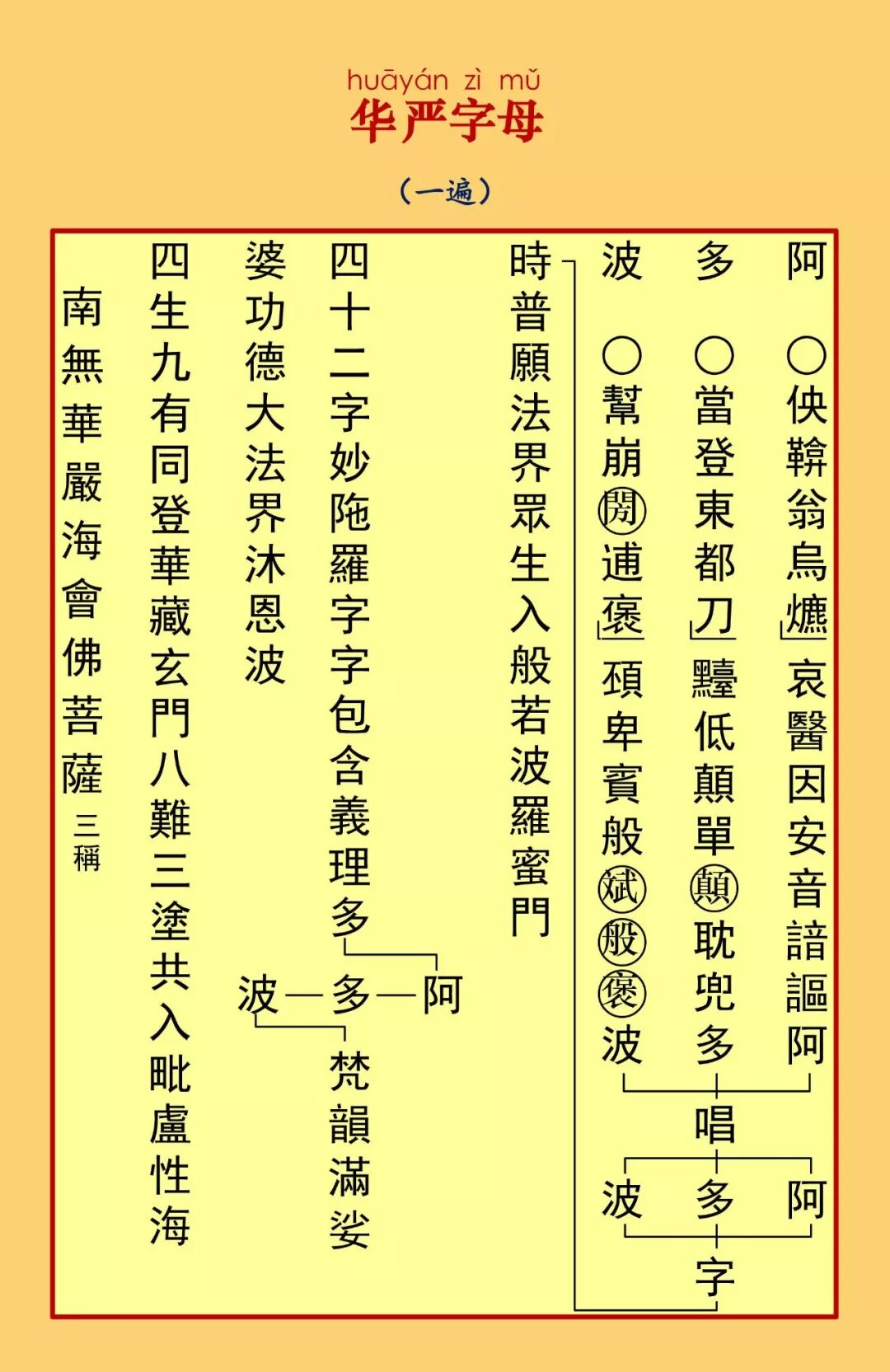 根据《乾隆大藏经》大乘华严部,第0084部,唐于阗国三藏沙门实叉难陀译《大方广佛华严经》(80卷)原藏影印本校正注音。读诵仪轨取自福建莆田广化寺《大方广佛华严经》印本,华严字母根据柏林禅寺《华严字母》印本校正,句读及注音仅供参考。印能法师录有完整的四十二个华严字母的梵唱音频,请随印能法师学唱华严字母。每卷的梵唱音频与该卷的华严字母相对应,为“字母赞+三个华严字母”。设计排版说明:本注音佛经内容,由仁慧草堂编辑设计制作,如需转载请联系作者公众号,设计排版说明:本注音佛经内容,由仁慧草堂编辑设计制作,如需转载请联系作者公众号,特此说明。