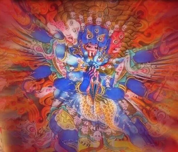 而有些众生因为前世福报非常大,却没有菩提心,更没有好好回向,发了一些邪恶的愿,这样来世就会变成世间的魔王、魔鬼,他们的神通、势力等各方面都远远超过了普通的天人、鬼神。要度化这样的众生,采用寂静的方式就比较难,所以要显现更凶猛的形象。