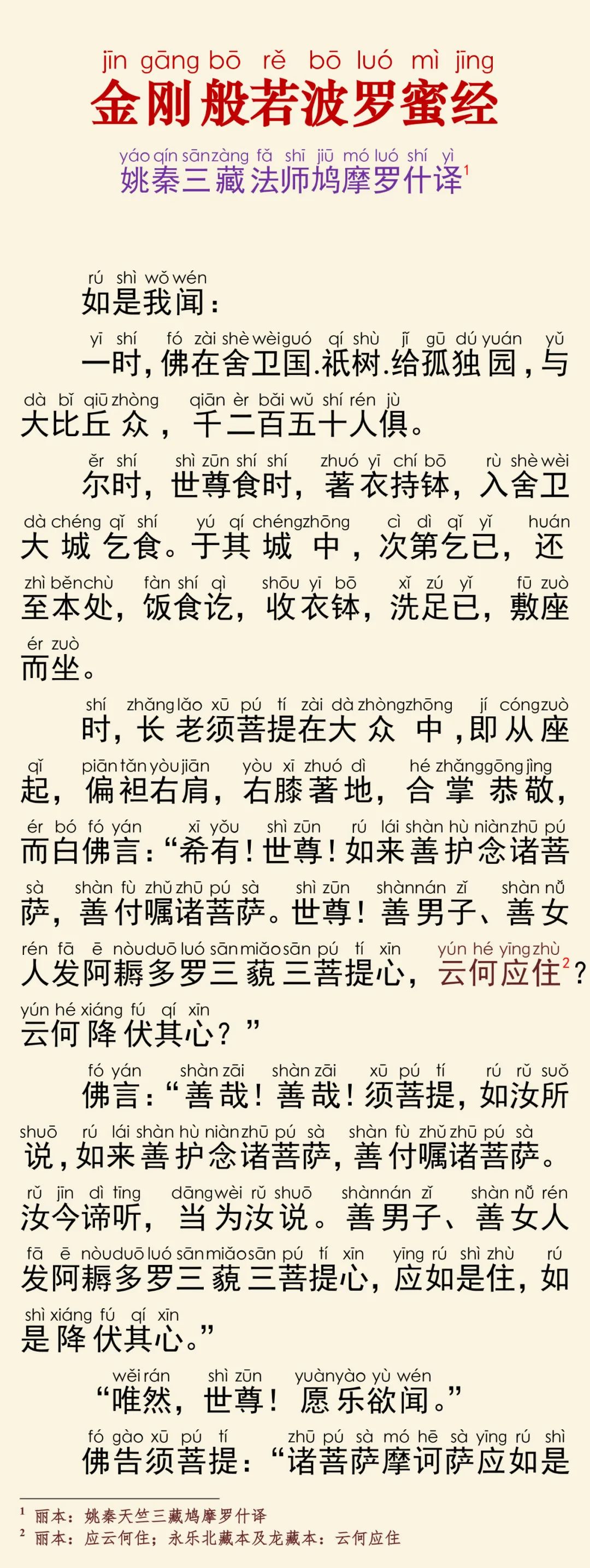 根据《乾隆大藏经》大乘般若部,第0010部,姚秦三藏法师鸠摩罗什译《金刚般若波罗蜜经》原藏影印本校正注音。栴檀居士恭诵。