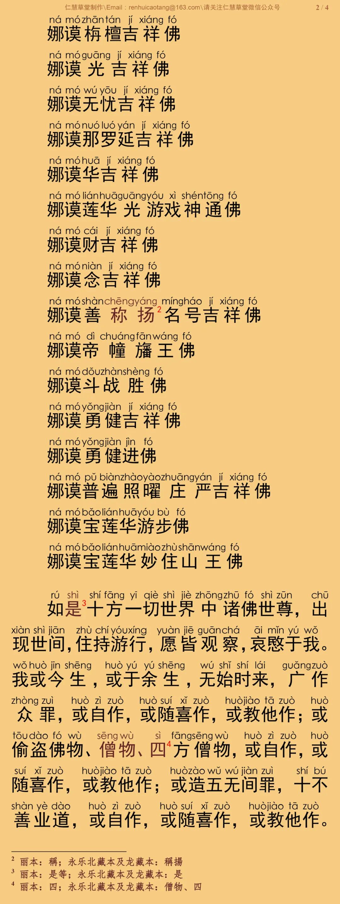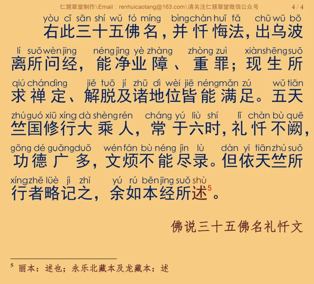 根据《乾隆大藏经》宋元入藏诸大小乘经第0974部,唐三藏沙门大广智不空译《佛说三十五佛名礼忏文》原藏影印本校正注音。妙枚居士恭诵。句读、注音及诵经音频仅供参考。特此说明。