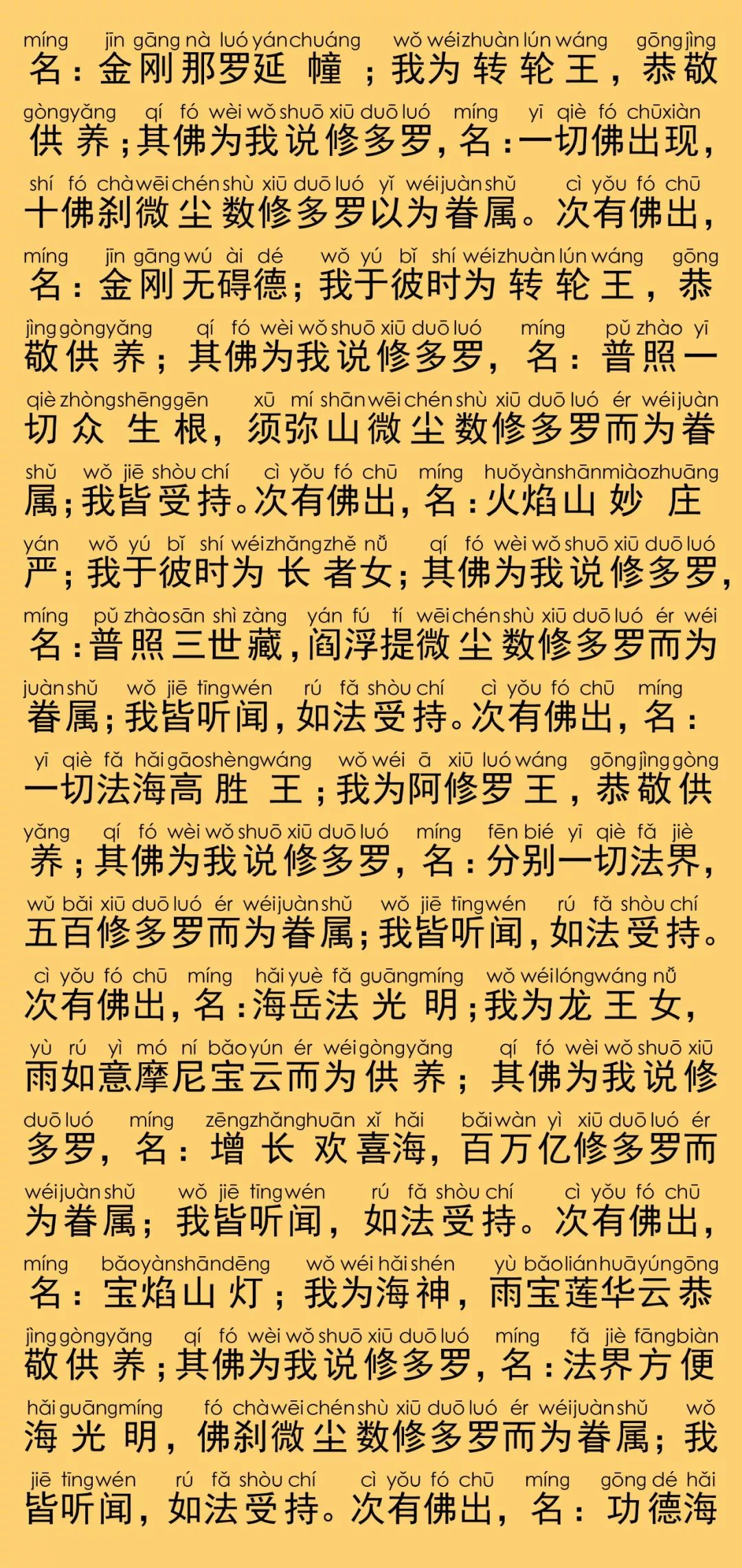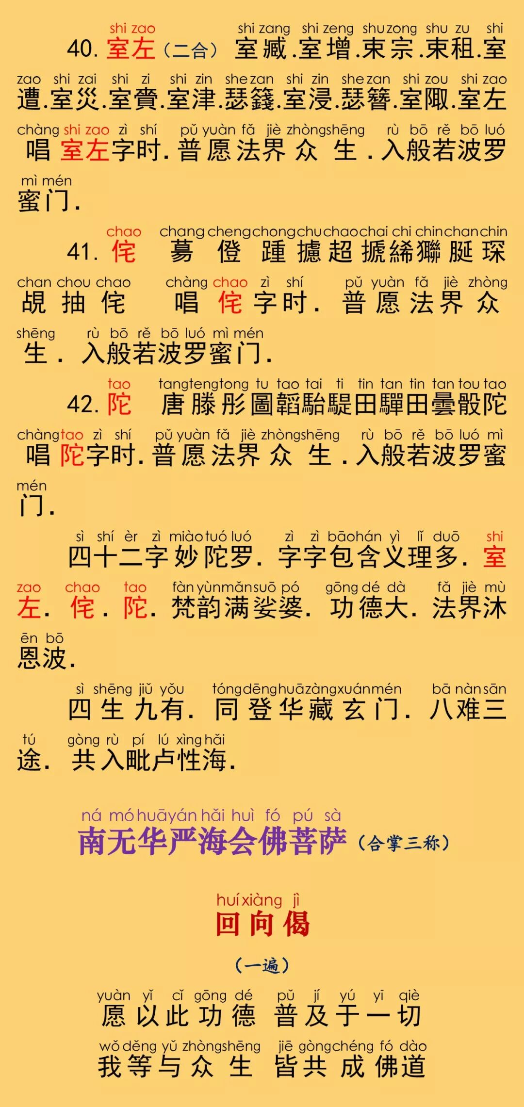 根据《乾隆大藏经》大乘华严部,第0084部,唐于阗国三藏沙门实叉难陀译《大方广佛华严经》(80卷)原藏影印本校正注音。读诵仪轨取自福建莆田广化寺《大方广佛华严经》印本,华严字母根据柏林禅寺《华严字母》印本校正,句读及注音仅供参考。印能法师录有完整的四十二个华严字母的梵唱音频,请随印能法师学唱华严字母。每卷的梵唱音频与该卷的华严字母相对应,为“字母赞+三个华严字母”。设计排版说明:本注音佛经内容,由仁慧草堂编辑设计制作,如需转载请联系作者公众号,特此说明。