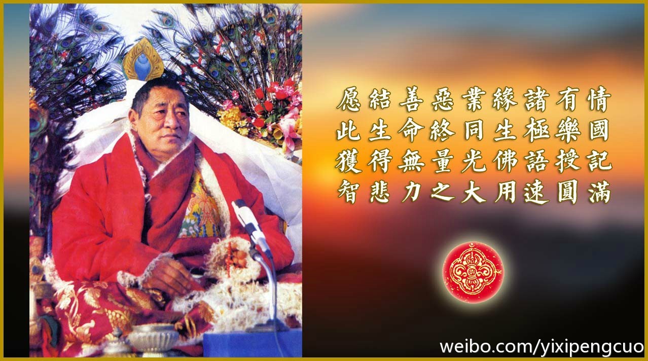 圣者上师法王如意宝亲口说过我的大愿是:上等要把全世界的人摄受到极乐世界,中等要把全中国的人摄受到极乐世界,下等要把全雪域的人包括传承下的弟子们摄到极乐世界。《愿海心髓•普贤刹之大日轮》中也说”愿结善恶业缘诸有情,此生命终同生极乐国,获得无量光佛语授记,智悲力之大用速圆满。“