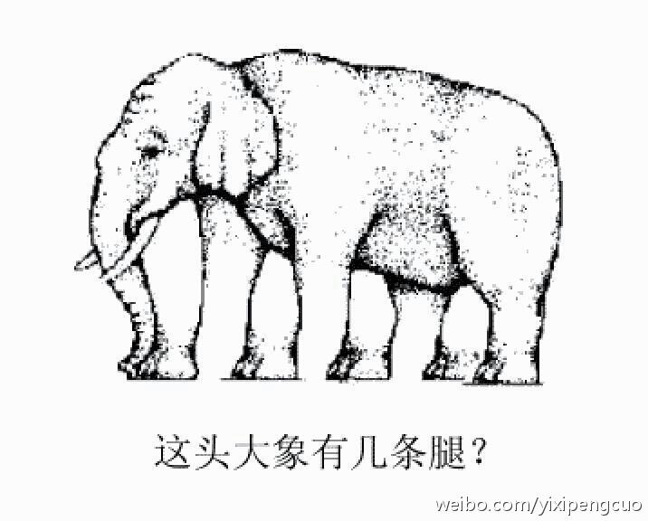 看东西的时候,大家看到的都只是局部,而不是整体。比如看人,看到的或是前面,或是背影,看前面也大多只是看脸而已,但是,大家下意识地都觉得看到了完整的人,这是因为第六意识凭经验和印象,对眼睛看到的信息进行了后期修补、填充。大家不妨现在就盯着下面这张图看两三分钟,看看是否就是这个理?