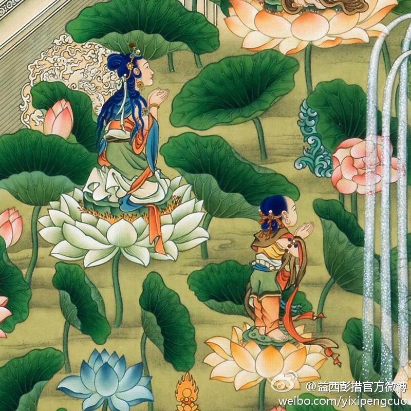 许多人感慨修行难,其实一旦入于极乐国度,就能自然引发道心,不必别人劝导,自然行持菩提行。听到鸟鸣,自然引发悲心;得到佛光照触,立即增益菩提心;听闻池水说无生法,当即生起般若正观;身处楼阁,普见十方净秽国土,自然发起大悲心、菩提心……所以,今生只需把目标锁定西方,修行自然成办。