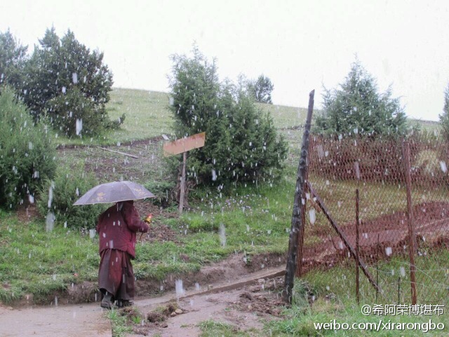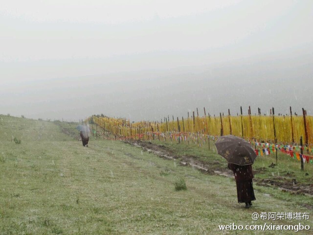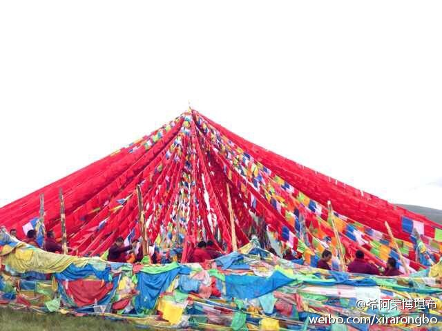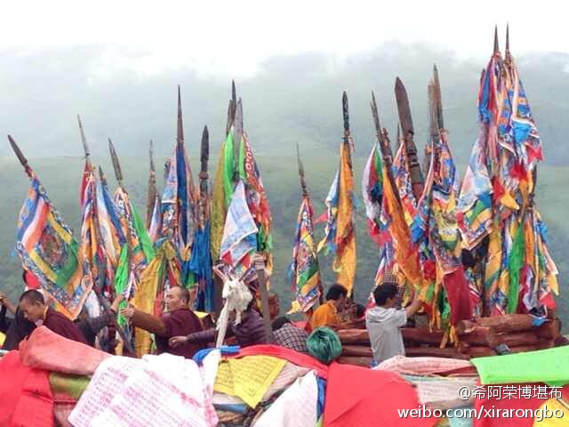 前天,扎西持林僧众在扎西雍宫供护法,远近的村民闻讯也都赶来参加,上至八九十岁的老人,下至两三岁的孩童,一大早都兴致勃勃地爬上山顶,同僧众们一起挂经幡、抛风马、诵经祈福。愿世界和平,众生安康。