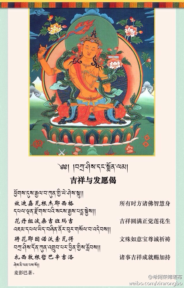 麦彭仁波切作的这首吉祥偈,当年大恩上师法王如意宝念诵的调儿是这样的,学院师生常年也是按照上师的这个音调念诵。网页链接