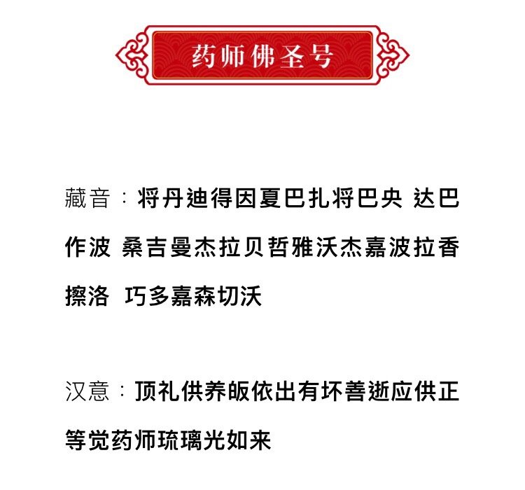 今天开始,至9月15日(藏历七月廿二~七月廿八),正值药王星当空,为期7天。在此期间,大家以三殊胜摄持,多持诵药师佛圣号及心咒。愿一切众生远离病苦,身心无忧。七日药王星当照,清净病障业障的好时机,你要不要试试