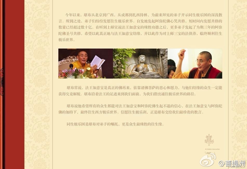 1987年,大恩上师晋美彭措法王如意宝莅临五台山,隨行僧俗万余人。法王于菩萨顶建造了一尊莲师像,并亲自装藏开光。这尊佛像的加持不可思议,有缘者得见解脱。今天是藏历初十,莲师节日,念诵莲师心咒:嗡啊吽班匝格热班玛色德吽