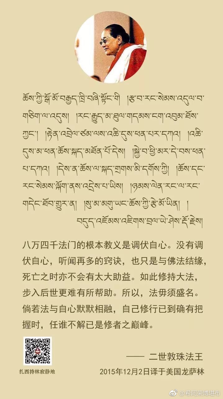 “既然无论是外在的世界,还是我们自身,都没有恒常不变的东西,那又何必对于现在所拥有的贪恋不舍呢?在这个世界上,每个人的苦乐虽不相同,但有一点却是共同的:我们的快乐与痛苦,宛如天空中的闪电,全都是无常。”——法王如意宝法王如意宝:对老年人和年轻人的开示