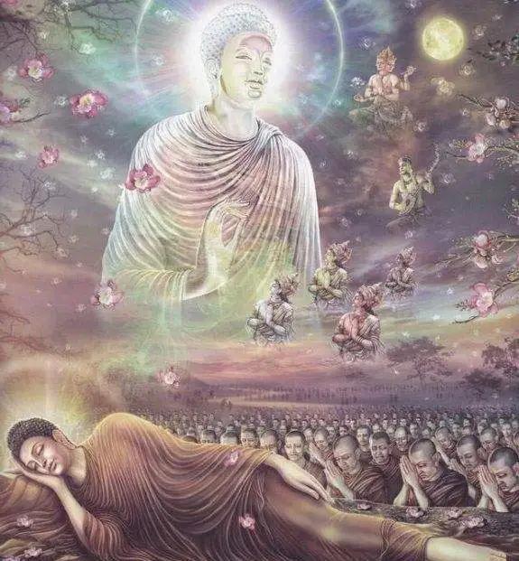 就像当年释迦牟尼佛示现圆寂时所说的一个比喻:有一位儿女成群的父亲在弥留之际,他的儿女有些在场,有些还没回来。父亲把一部分家产分给了在场的儿女,又将留下的另一部分交代给在场的儿女说:“虽然你们有些兄弟姊妹还没回来,但他们也是我的儿女,你们以后要把这部分家产给他们。”父亲去世之后,在场的儿女也遵照父愿,把剩下的家产交给了晚归的儿女手里。同样,佛在三个无数大劫中让无数众生的根机成熟了,但因为有些众生犯了一些错误,修行不精进,所以没有机会让佛亲自度化,但总有一天他们会回来,那时佛的教法就可以交给他们。网页链接[慧灯之光七:<赞法界颂>略释]