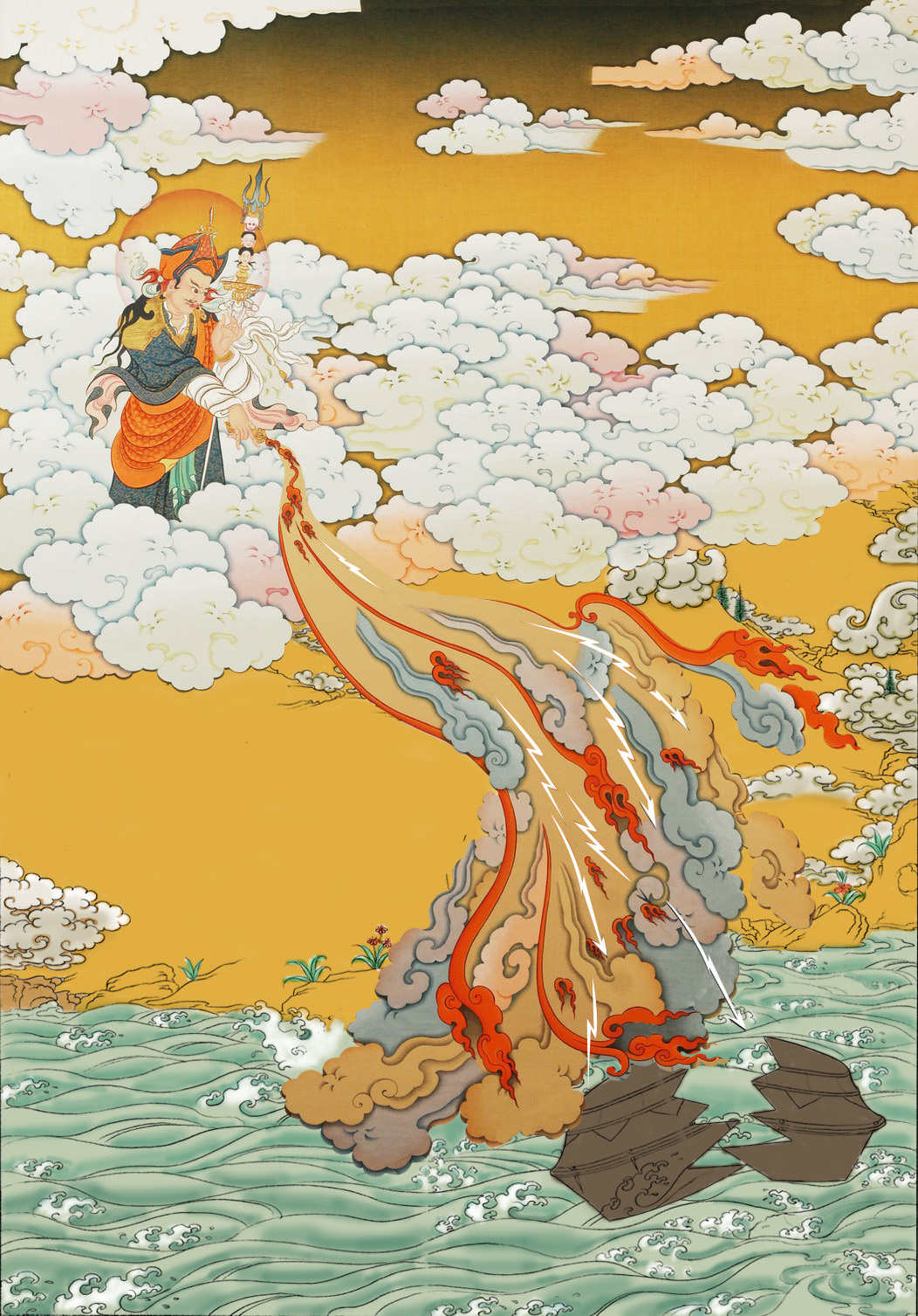 “七月初十,为摩诃格热被投付恒河而在水上舞蹈之良时,名号称为飞空。利益:得胜转变——修习良好,等持善妙,语言能力强,摄持子财良时,持财富藏,快乐少病,净除身体痼疾,眷属众多。由此原因,当领会此义,秉持初十法行。”