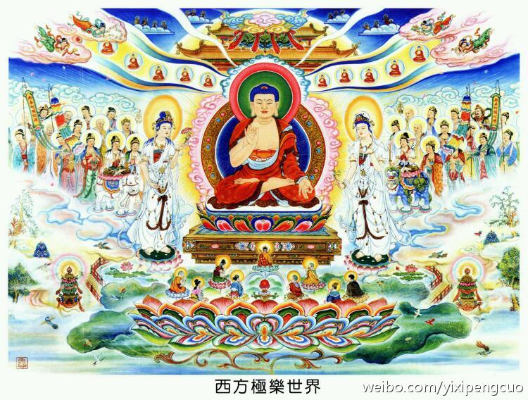 法藏菩萨见到娑婆世界虚空中色相浊恶,由此就兴起悲愿使虚空处处显现宝网弥覆的庄严;见到虚空中声音浊恶,雷声轰隆骤雨倾盆,由此就发愿成就“铃铎宫商,鸣宣道法”的虚空庄严;见到虚空中出现不祥的灾气,使心忧虑恐惧,由此就发愿成就虚空使人“视之无厌,怀道见德”的庄严。多么美妙的极乐世界!