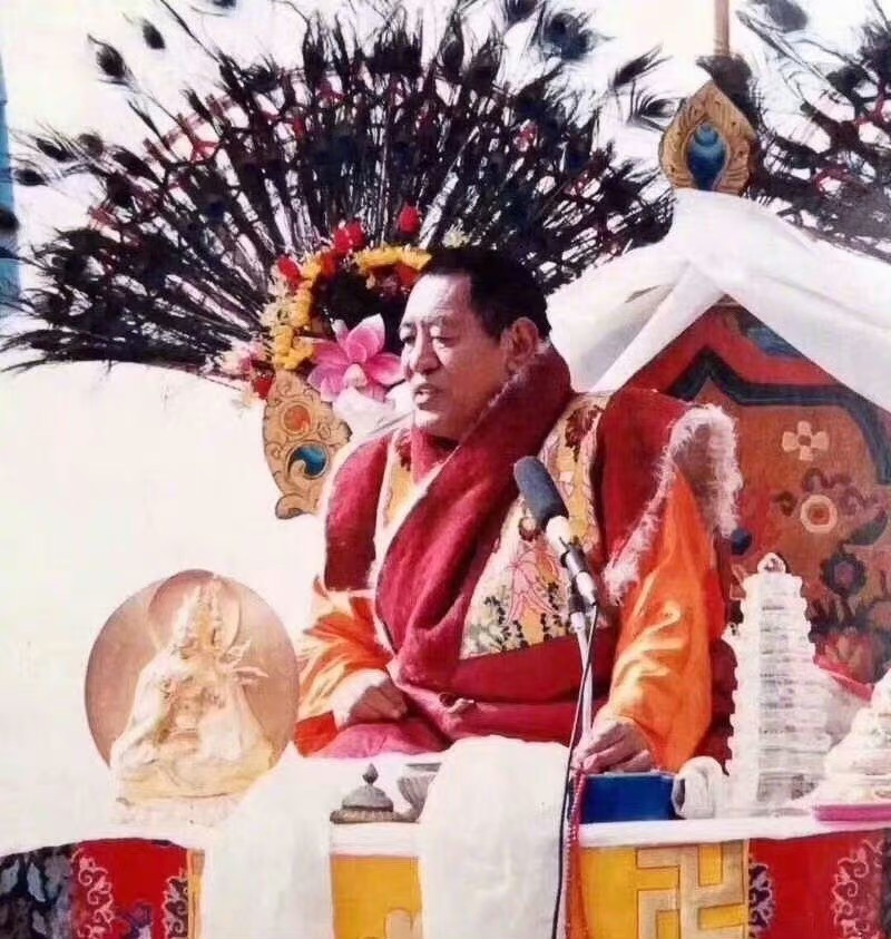 “至尊大恩上师法王如意宝!我至诚恭敬地将自己的身语意三门献给您!