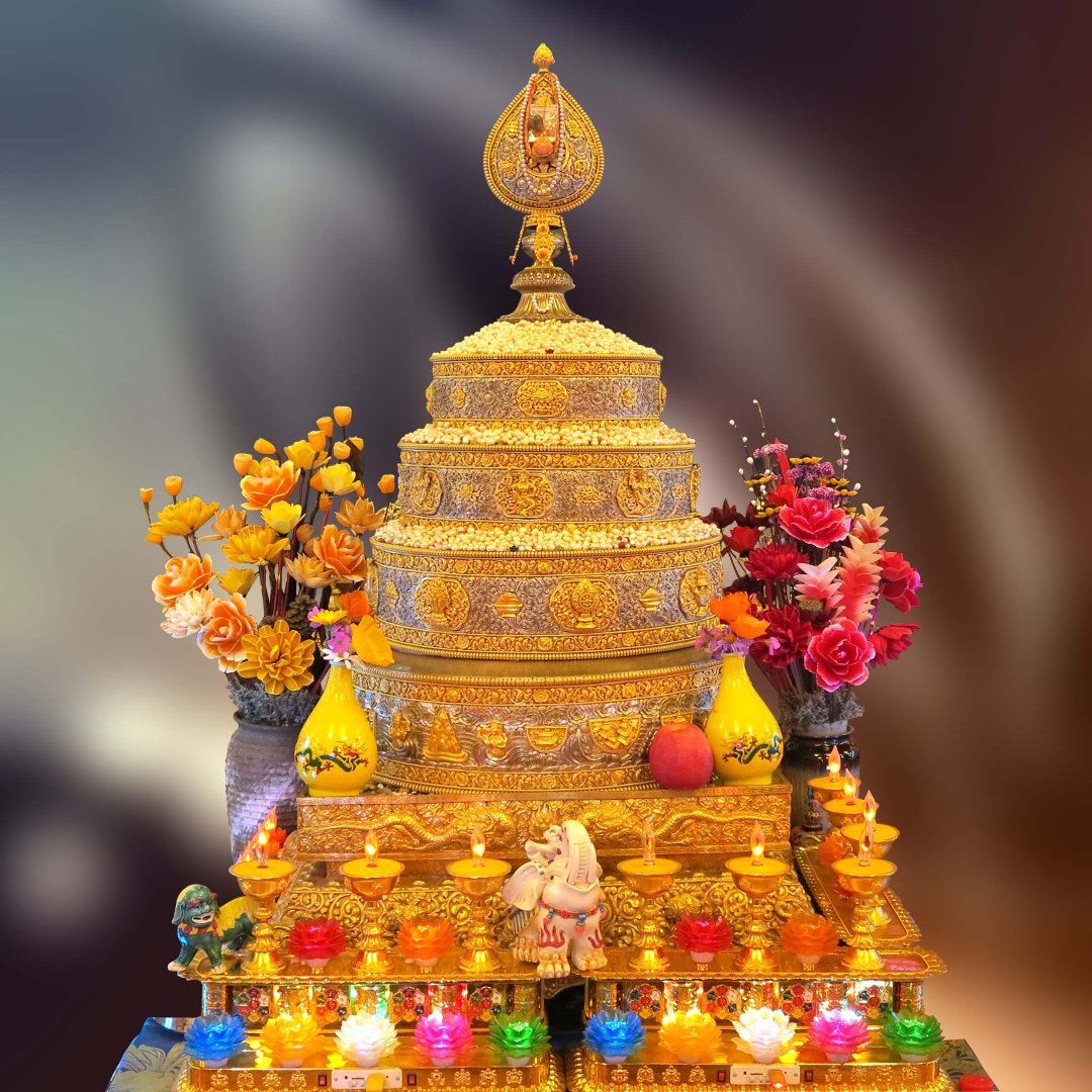 今天是伟大导师释迦牟尼佛转法轮的吉日,自从佛陀成道转法轮后,我等无依无靠的的众生,从此便有了依怙处——无上的导师佛宝、无上的救怙法宝、无上的引导僧宝。总之,在这个娑婆世界中,一切三宝的现象都是大导师佛陀您伟大的事业。在这样一个殊胜的吉日里,我们佛弟子都要随学佛,发起无上菩提心、发大愿并持名念佛、供灯、供水等行持种种善法。最后按照上师法王如意宝所著的《药师经王极略仪轨·甘露妙滴》中的偈颂来发愿回向:
