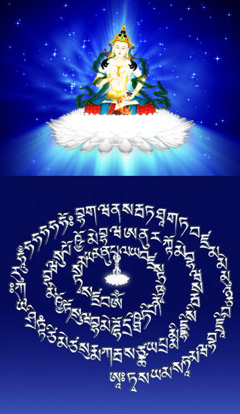 问:金刚萨埵心咒和金刚萨埵是什么关系?答:金刚萨埵佛尊和金刚萨埵心咒是无二无别,心咒就是佛尊,佛尊就是心咒。就像一位演员演文官、演武将,嬉笑怒骂、举手投足,这些表现和演员是什么关系呢?这些表现和演员不是两个,都是演员的游舞,要相信这就是演员。同样,在我们业障凡夫的心前,不能亲见金刚萨埵的法身、报身和化身,那在我们心前佛尊以什么方式显现呢?是显现密咒的文字相。所以金刚萨埵心咒是金刚萨埵智慧的幻变。
