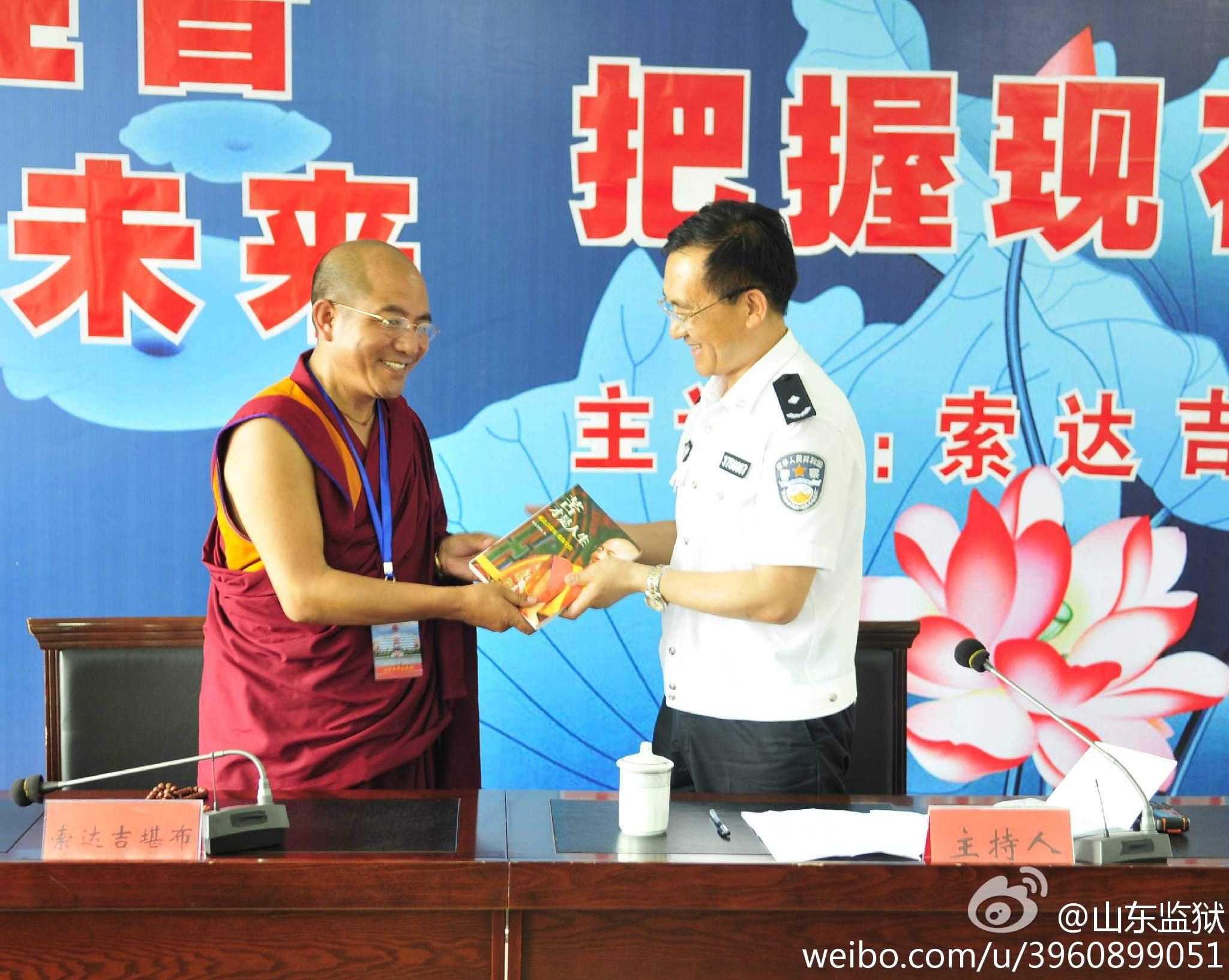 #一线传真#【索达吉堪布上师到监狱和服刑人员谈人生】6月22日,藏传佛教索达吉堪布上师应邀到青岛监狱,为服刑人员作了“认清往昔、恭迎未来、 把握现在”为题的讲座,并为监狱赠送书籍。