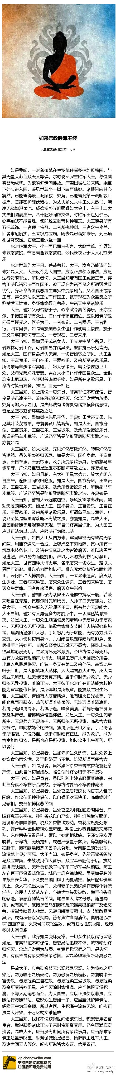 今天对照藏文的《教王经》,看了一遍其汉文版本的《如来示教胜军王经》,自己有三个体会:1、不管是什么身份的领导,都要如法行持,不能做非法;2、一切都是无常的;3、死时什么也带不走。强烈推荐每个人看一遍,并结合自身潜心体会。