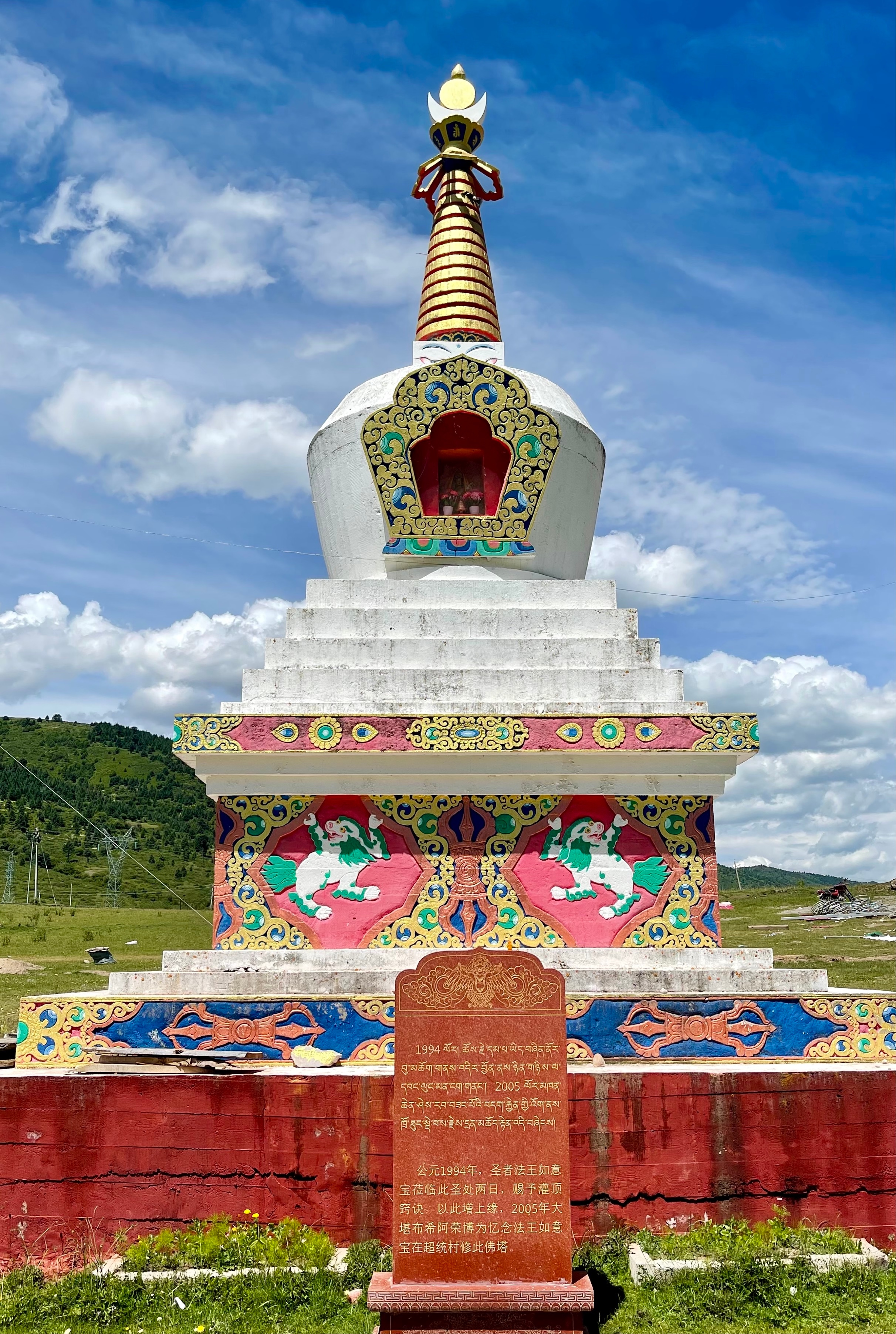 二十七年前,我的根本上师法王如意宝在这里停留过三天两夜,为当地信众传讲取舍因果的教言,并赐予灌顶窍诀。当时,法王如意宝非常开心,在场的我内心也充盈着激动欢喜。如今,回想往昔的情景,心中遍满深切的怀念!