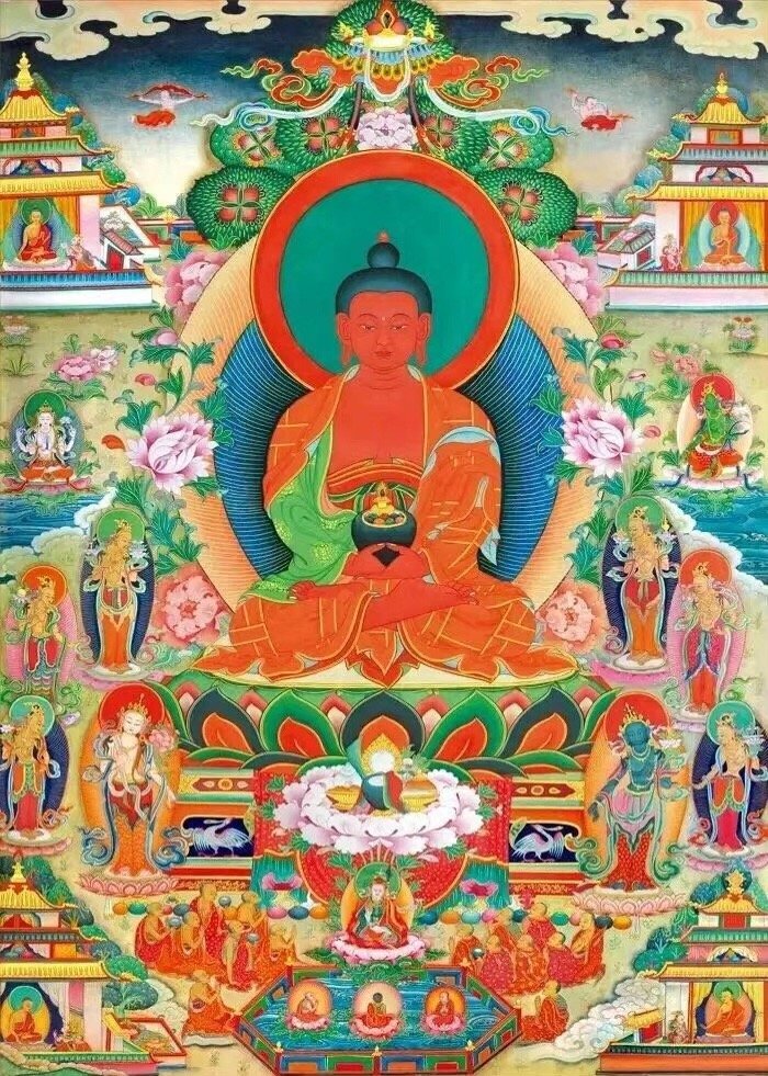 一生到西方,就永远脱离忧悲苦恼,极为快乐;一生到西方就自然现前三十二相;又有天眼、天耳、神足、宿命、他心等的极广大神通,极为自在,金刚身的光明遍照十方;佛国七宝林中树枝相碰发出的妙音,此世间最美妙的音乐不及其一分……