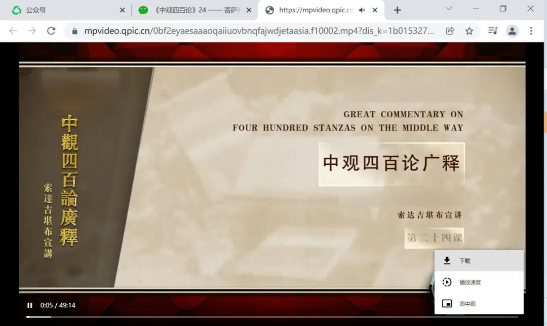 5、双击打开MP4文件,点开右下角的三个点,会出现 下载菜单,点击即可保存到电脑。