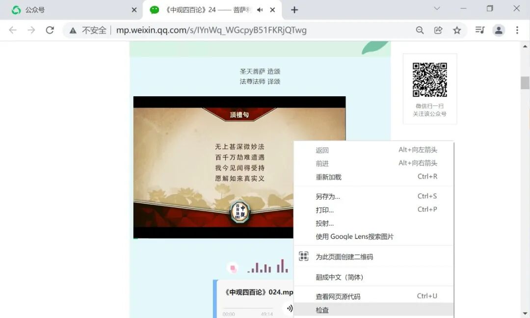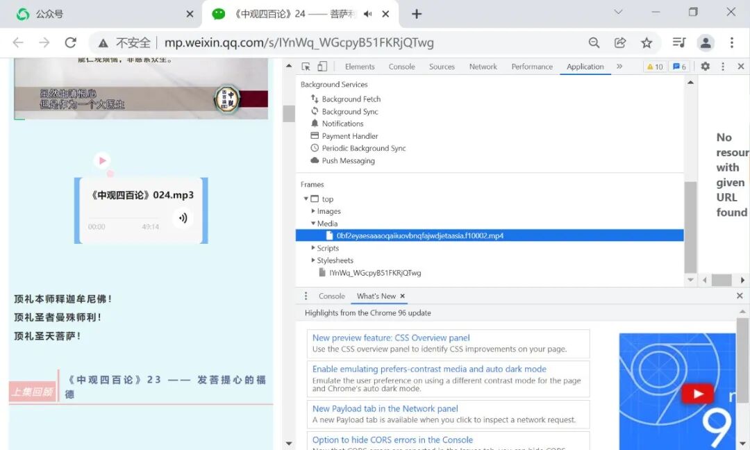 6、下载音频过程基本相同,打开音频文件,点右键,检查-application,在media下出现getvoice文件,双击打开,其他步骤相同。
