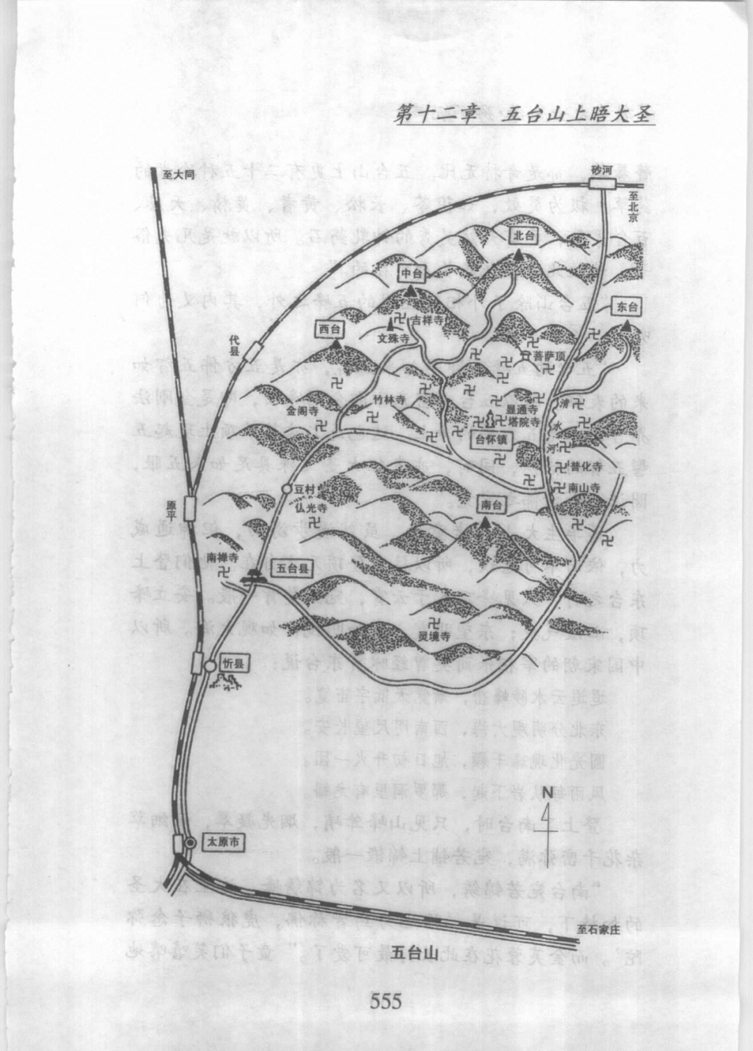 在峰顶之上,东望海气,北眺漠烟,使人顿生无常悲凄之感。上首童子说道:“在此山顶,俯仰大观世界,更觉此生微茫虚幻,只有一心精进修证佛智,才是惟一的路径。”莲华生大士深有同感。所以有诗咏赞北台说: