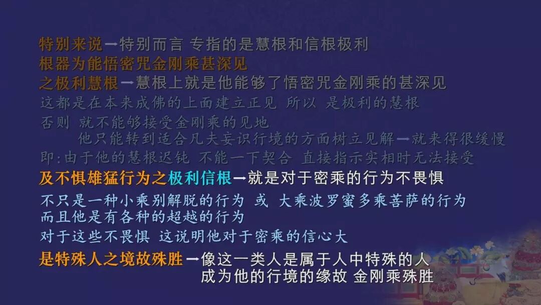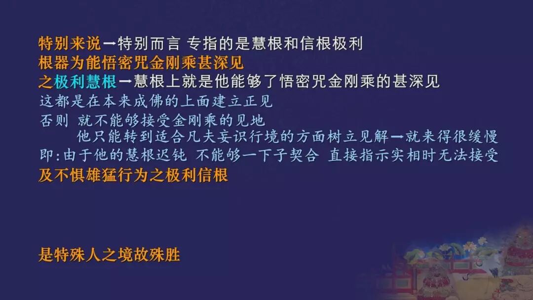 特别而言,专指的是慧根和信根极利,慧根上就是他能够了悟密咒金刚乘的甚深见。