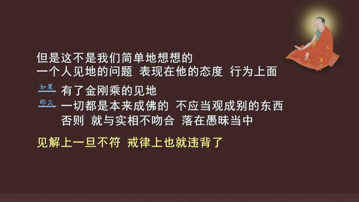 如果有了金刚乘的见地,那么一切都是本来成佛的,不应当观成别的东西,否则就与实相不吻合,落在愚昧当中。