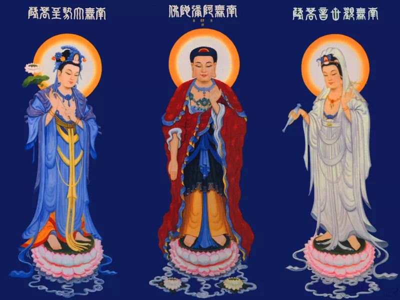 净土宗:有三大经典:《阿弥陀经》、《无量寿经》、《观无量寿经》。根据释迦牟尼解说,在相当久远的年代之前,有一国王发愿,舍王位出家,名为法藏比丘,他发了四十八个度众生的大愿,后来他修成佛了,名号为“阿弥陀佛”,在遥远的西方“建造”他的极乐净土。这片净土专门接引有缘众生,使他们死后能前往一个“成佛”的培训学校。只要我们临终时信心足够坚定,能真诚地发愿念佛,并经常行善,阿弥陀佛和他的菩萨伙伴就会来接引你,把你带到这里好好培训。净土宗的主尊是阿弥陀佛,阿弥陀佛净土就是西方极乐世界。净土宗考虑到众生学佛存在很多困难和障碍,例如没时间修行,或有时间却找不到正宗的老师,那只要你“弥陀不离口”,不再做坏事,一心念佛,与阿弥陀佛的大愿相互感应,那么此生结束后,阿弥陀佛就会安排你到最好的“佛学院”去“住校”学习。