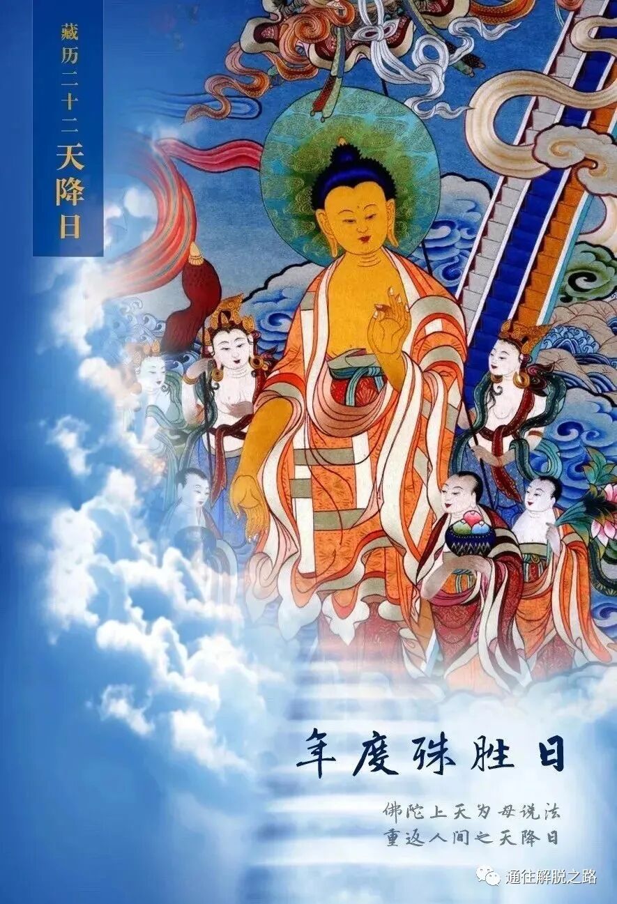 是纪念佛陀上天为母说法完毕,重返娑婆世界之“天降日”,在此殊胜日,行持任何善法,功德增上十亿倍。最殊胜的日子——天降日(佛陀从忉利天下降人间)