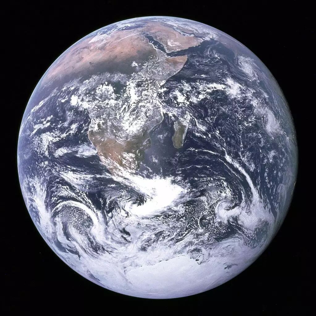 (1972年12月7日阿波罗17号拍摄的地球照片,名为蓝色弹珠;图片源自NASA)