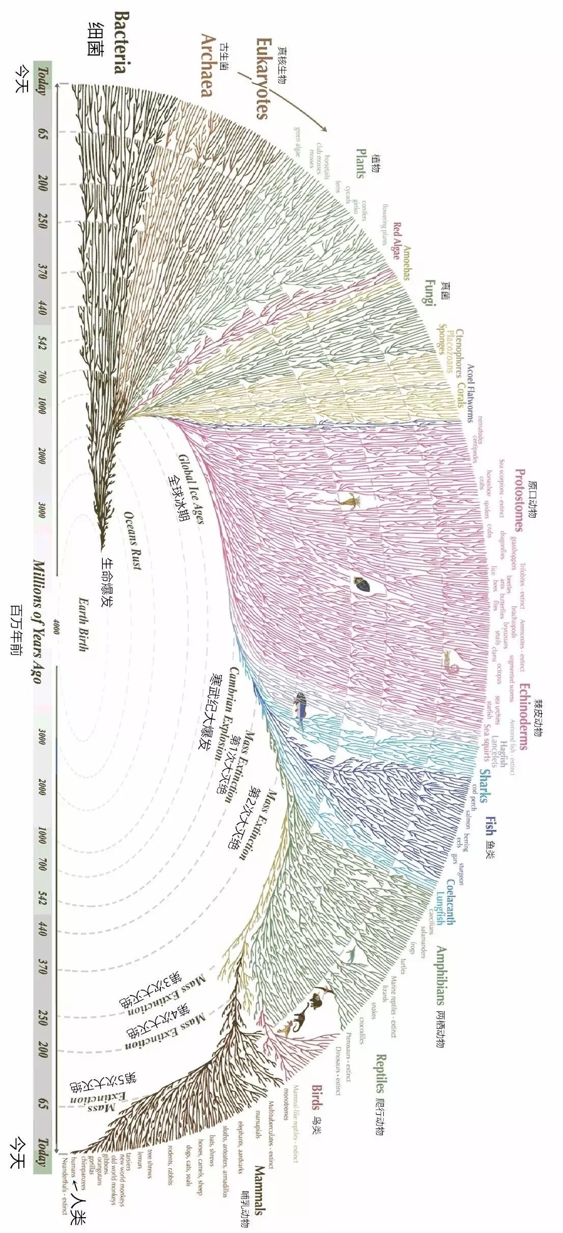 (生命之树,请将手机横屏并点击放大观看,图片源自美国进化论教育机构Evogeneao,星球研究所标注)