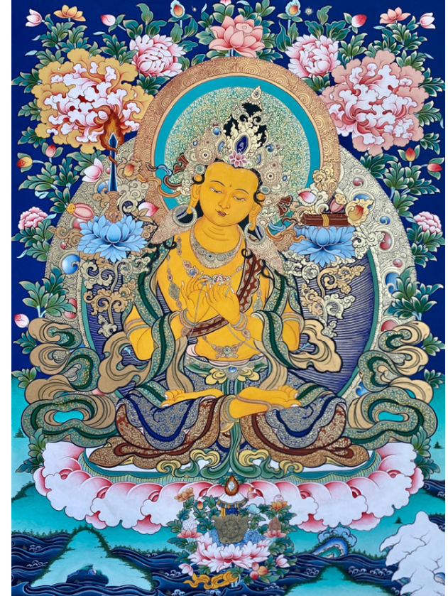 文殊童子以威神力令多闻天子化现为人的形象对她说:“不要追求这个人,他是文殊童子菩萨。但他能满足众生的心愿,有求必应。”