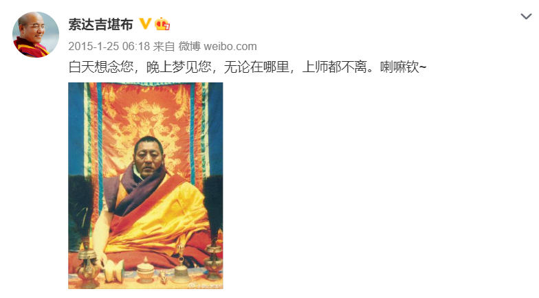白天想念您,晚上梦见您,无论在哪里,上师都不离。喇嘛钦~