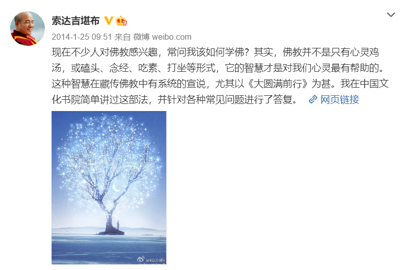 现在不少人对佛教感兴趣,常问我该如何学佛?其实,佛教并不是只有心灵鸡汤,或磕头、念经、吃素、打坐等形式,它的智慧才是对我们心灵最有帮助的。这种智慧在藏传佛教中有系统的宣说,尤其以《大圆满前行》为甚。我在中国文化书院简单讲过这部法,并针对各种常见问题进行了答复。