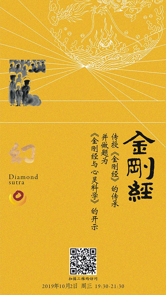 2019年10月2日(星期三),北京时间19:30-21:30,上师仁波切将传授《金刚经》的传承,并做题为《金刚经与心灵科学》的开示。