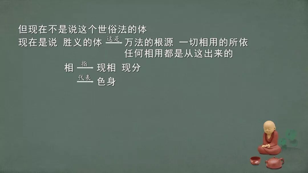 但现在不是说这个世俗法的体,现在是说胜义的体,其实这是万法的根源,一切相用的所依,任何相用都是从这出来的。
