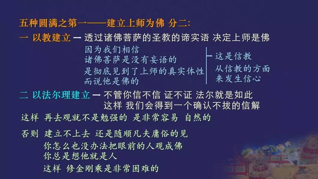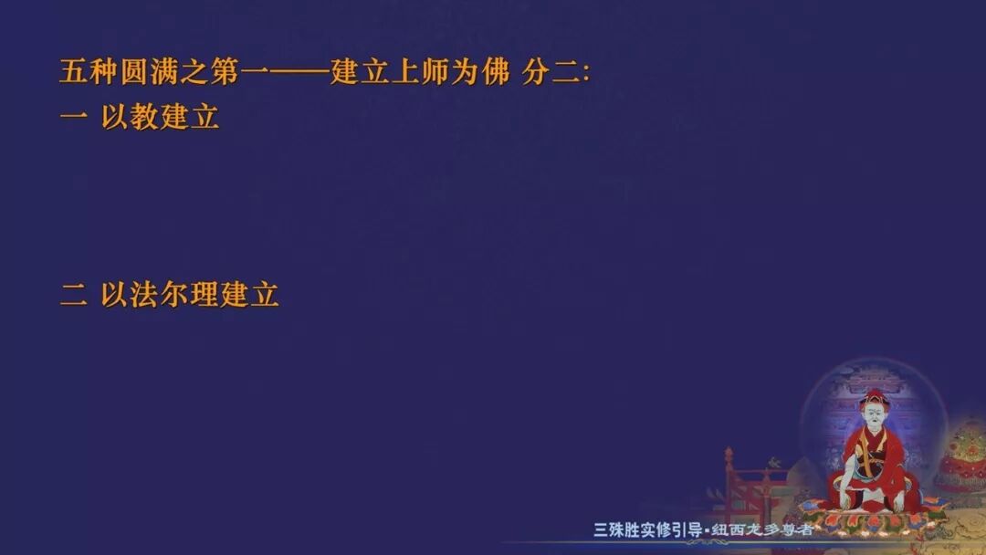 我们首先在五圆满里面要建立上师为佛,这又有以教建立和以法尔理建立两条。