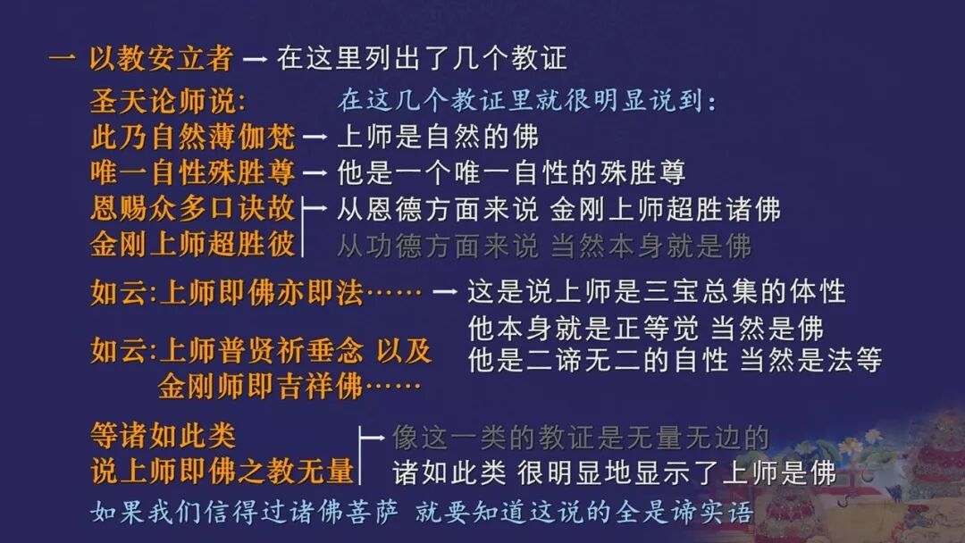 以教建立,就是透过诸佛菩萨的圣教的谛实语,决定上师是佛。