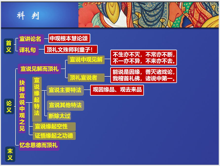 《中观根本慧论》是一部非常重要的中观论典。藏地凡是学中观的人,都对它极为重视!在所有的中观论典当中,《中观根本慧论》居根本地位,即起到根本性作用。如果想通过理证、因明的推理,来为世人讲解清楚般若思想,唯一的办法就是依靠《中论》,依靠龙猛菩萨无上的智慧来解说。在这样五浊猖狂之时,遇到了般若波罗蜜多,能修学中观的殊胜法门确实非常有福报,千载难逢,自己应该以一颗非常难得的心来接受此法。